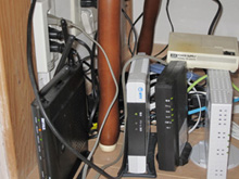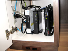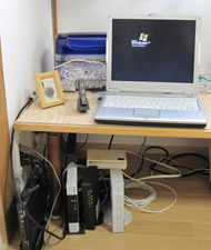 | モデムやルーター、色々なコード類がごちゃごちゃして絡まってしまいます。掃除したら線が外れそうなので、いつも恐々さっさと済ませていると、いつの間にかホコリだらけになってしまいました。 | |