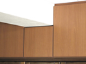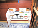 重たい食器もスライド式の棚板で楽々取り出せ、奥の方に何が入っているかも一目瞭然です。 |