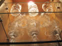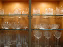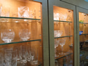 ガラスの棚板にダウンライトを照らすと、クリスタルや切子のグラスが映え