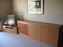 テレビ台付き大型壁面家具です。左側の家具はお気に入りの家具で是非残したいとの事でしたのでそのまま残し、右側と上部に作り足しました。