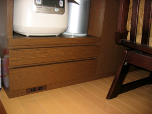 家具の使い易い場所にコンセントを 移設すれば問題解決! お掃除などの時は、家具に取り付けてあるコンセントから電源を取ることができます。