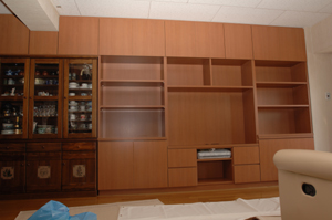 天井に梁があっても、オーダー家具なら 家具を左の写真のように梁欠きで施工できます。 |