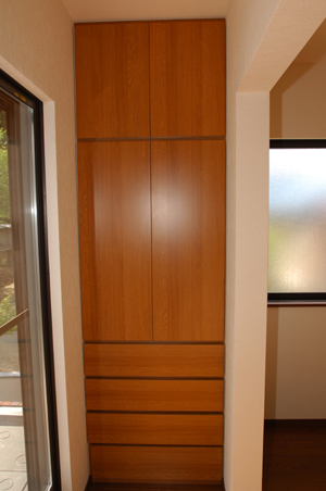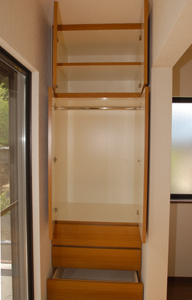 この場合、下扉をとることで幼児にも手が届く場所が便利な棚になりました。